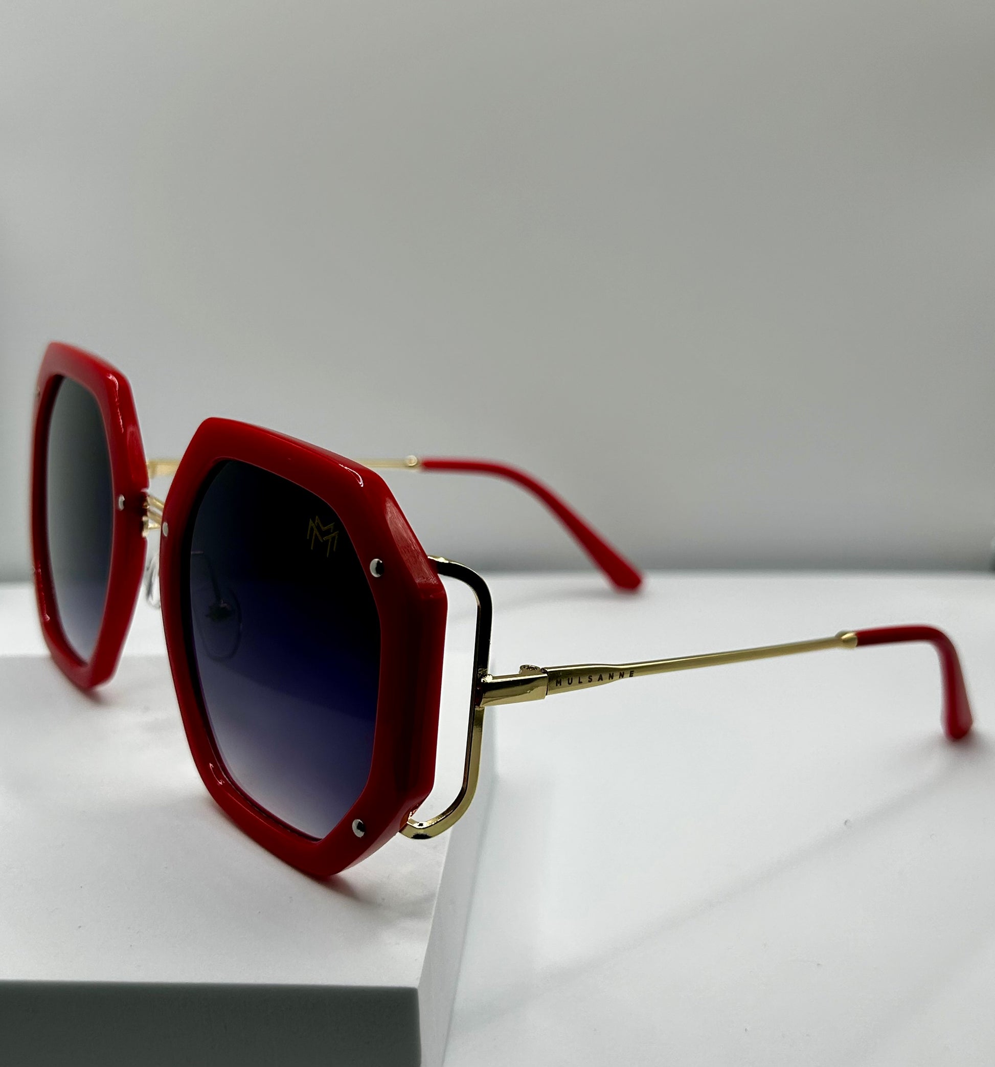 - Gold 'MM' Logo on Left Lens